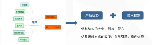 其中高熱值蘭炭可有效提升燃料熱值,滿足居民的室內(nèi)溫度需求;低成本原煤在不影響熱值及排放情況下的添加可有效降低燃料成本,生物質(zhì)燃料的加入提高燃料的燃燒通風特性,通過在配套爐具中實現(xiàn)清潔燃燒,大幅度減少廢氣污染物排放,給農(nóng)村清潔供暖,持續(xù)發(fā)展 免除政府補貼負擔找到了新的突破方向;