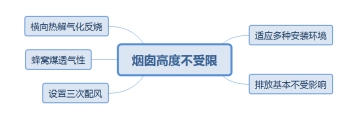 6. 環(huán)保效果優(yōu)異,除了顆粒物超低排放外,其他污染物排放爐具設(shè)計也有著靶向性解決方案,爐具的穩(wěn)定燃燒特性、低溫燃燒狀態(tài)、水套式結(jié)構(gòu)、以及通過對爐膛內(nèi)的合理配風,結(jié)合燃料煤層高度控制燃燒速度與溫度,降低氮氧化物排放,符合低氮燃燒原理。二氧化硫的控制方面,燃料選用鈣鐵固硫體系,控制爐溫在900℃以下,保證在爐灰中已經(jīng)形成的鈣鐵硫化物不會出現(xiàn)復(fù)分解釋放出SO2。燃燒過程穩(wěn)定有序,前排燃料正常燃燒,后排燃料的揮發(fā)煙氣慢慢析出,在前燃燒室與二次風混合撲向前排火焰,再配合爐具特有的三次配風設(shè)計,達到消煙效果。